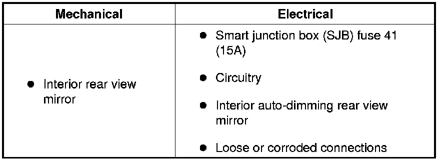 4. If the cause is not visually evident, verify the symptom. See - Symptom Troubleshooting Chart - Interior Mirrors.