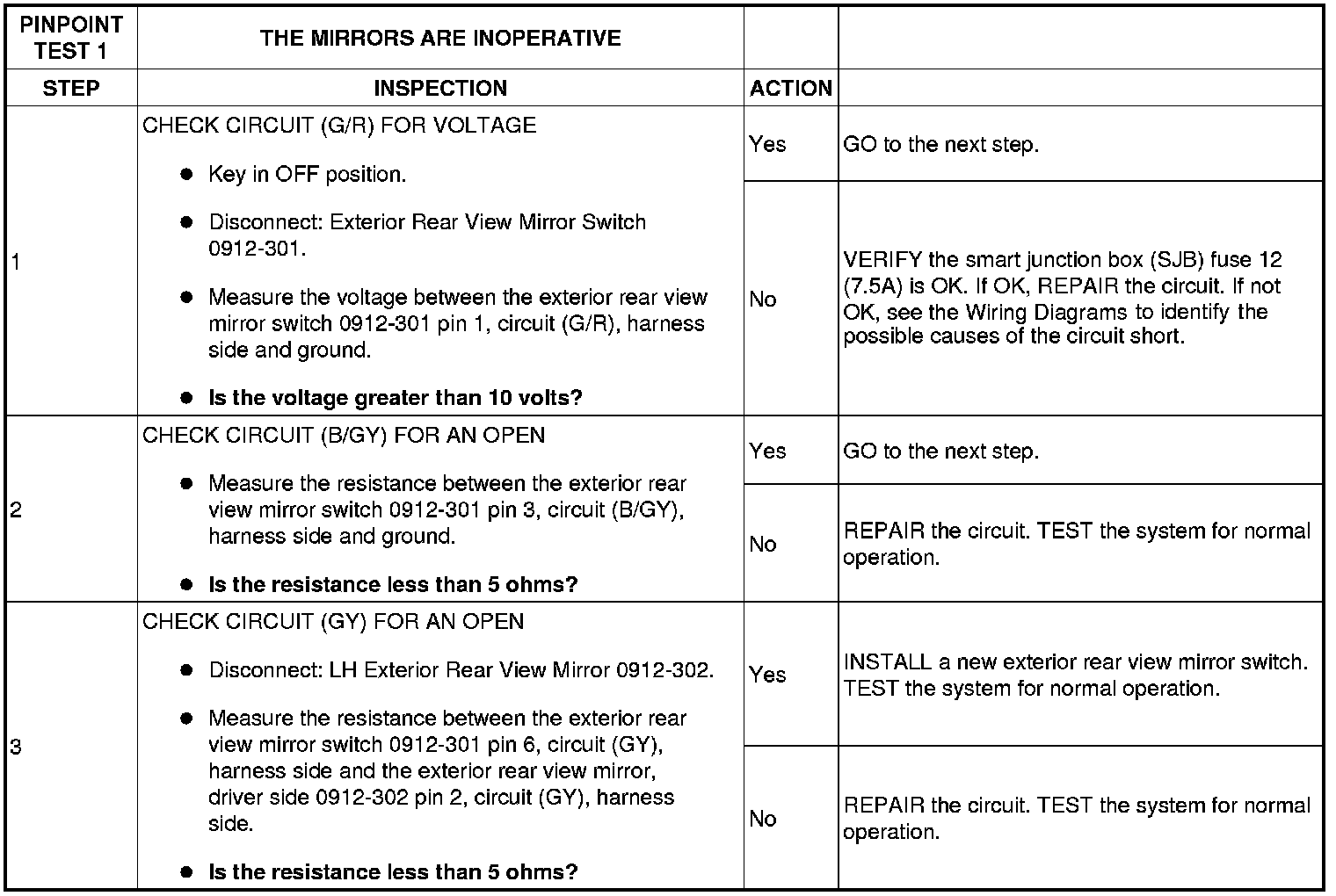 Pinpoint Test 1: The Mirrors Are Inoperative