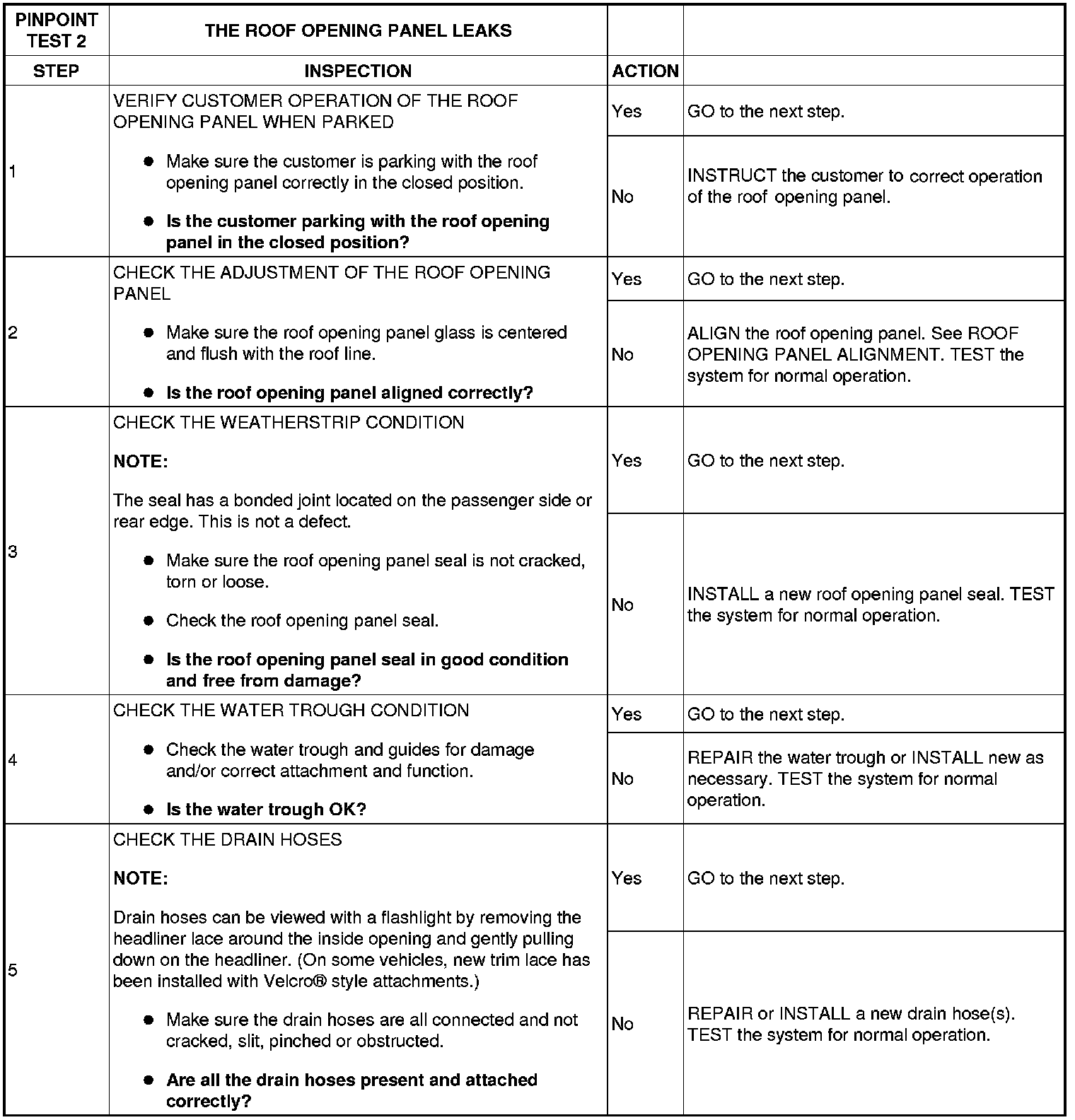 Pinpoint Test 2: The Roof Opening Panel Leaks