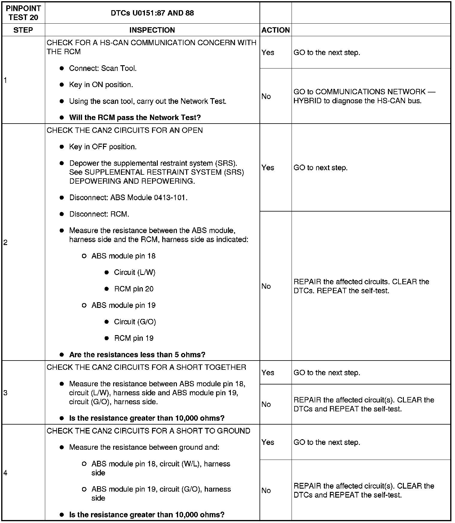 Pinpoint Test 20: DTCs U0151:87 And 88