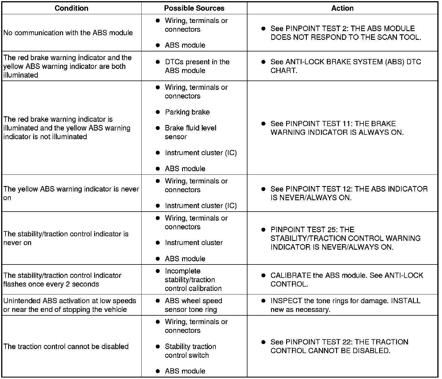 SYMPTOM TROUBLESHOOTING CHART - ANTI-LOCK BRAKE SYSTEM (ABS)