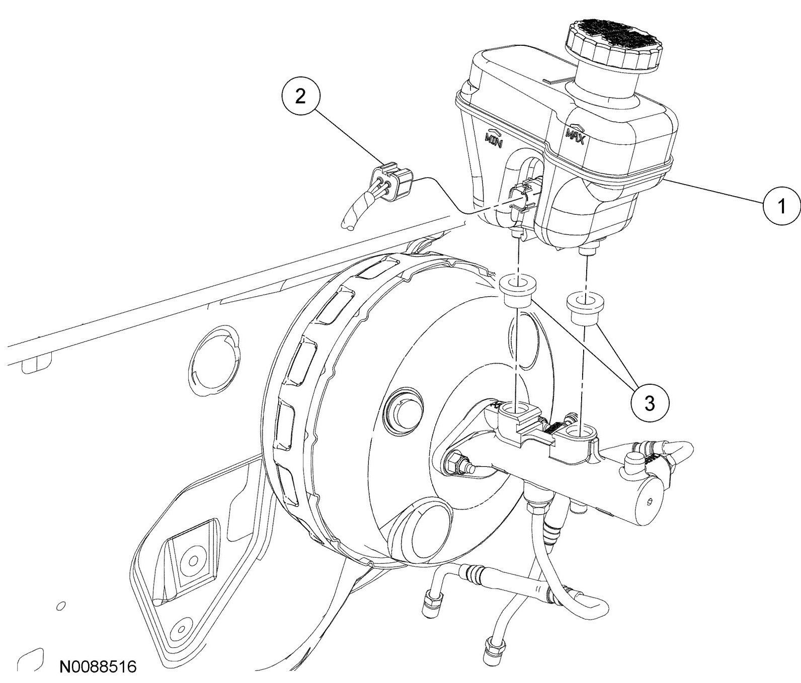1. Disconnect the brake fluid level warning switch electrical connector.
