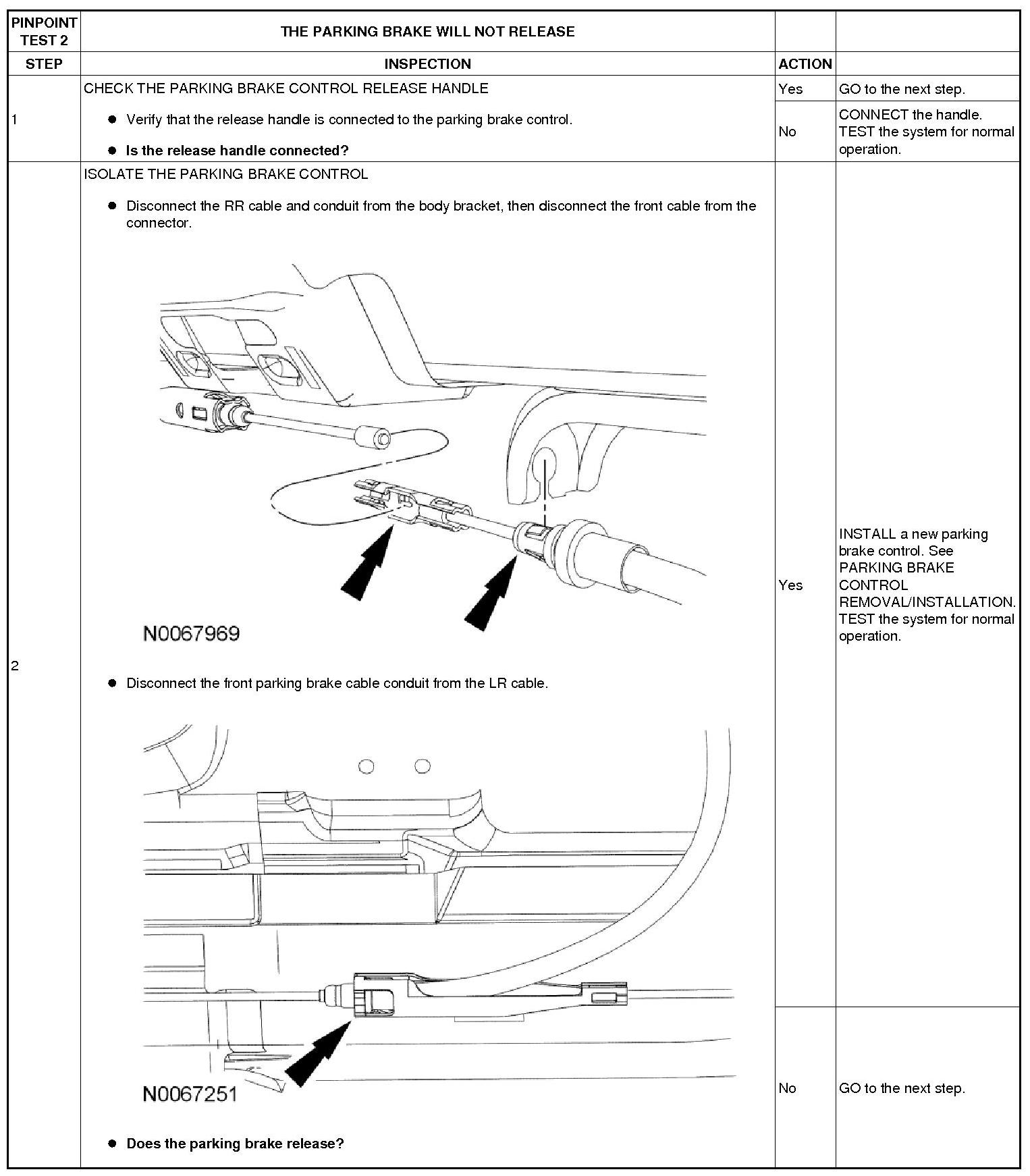 PINPOINT TEST 2: THE PARKING BRAKE WILL NOT RELEASE