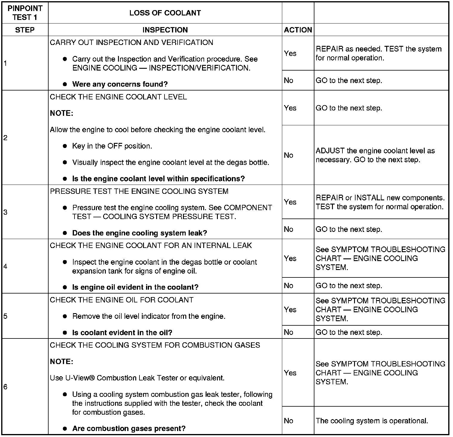 Pinpoint Test 1: Loss Of Coolant