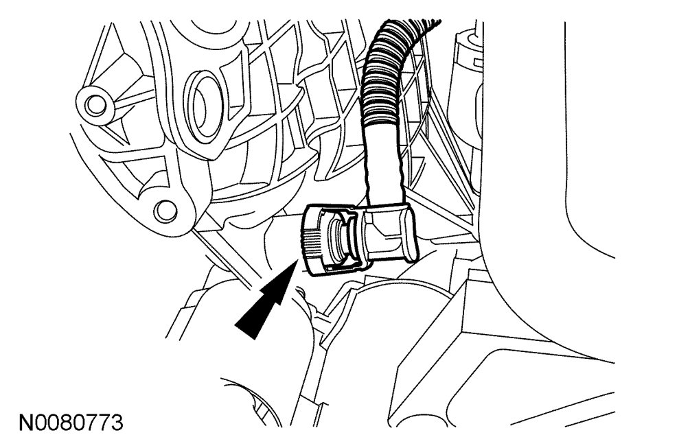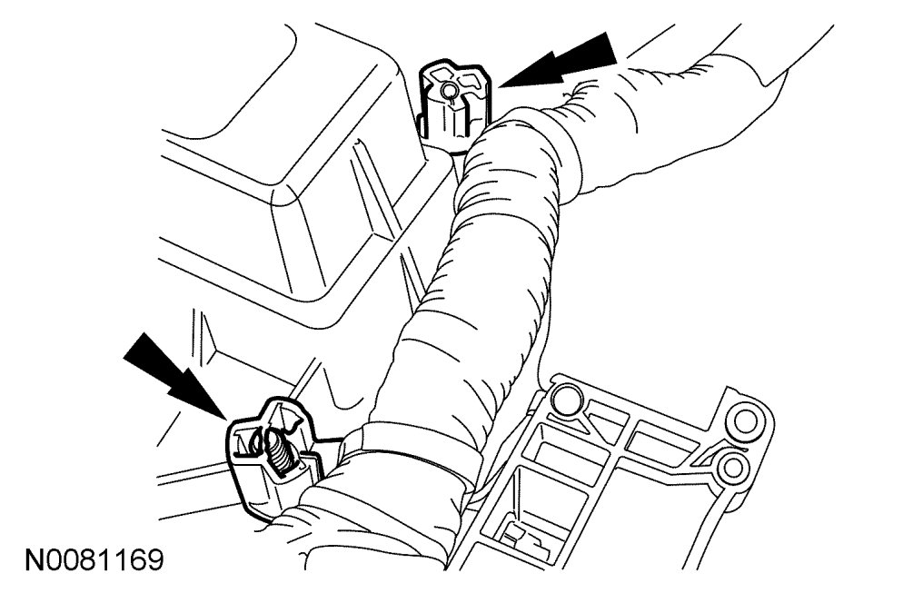 - Attach the wiring harness-to-engine retainer.