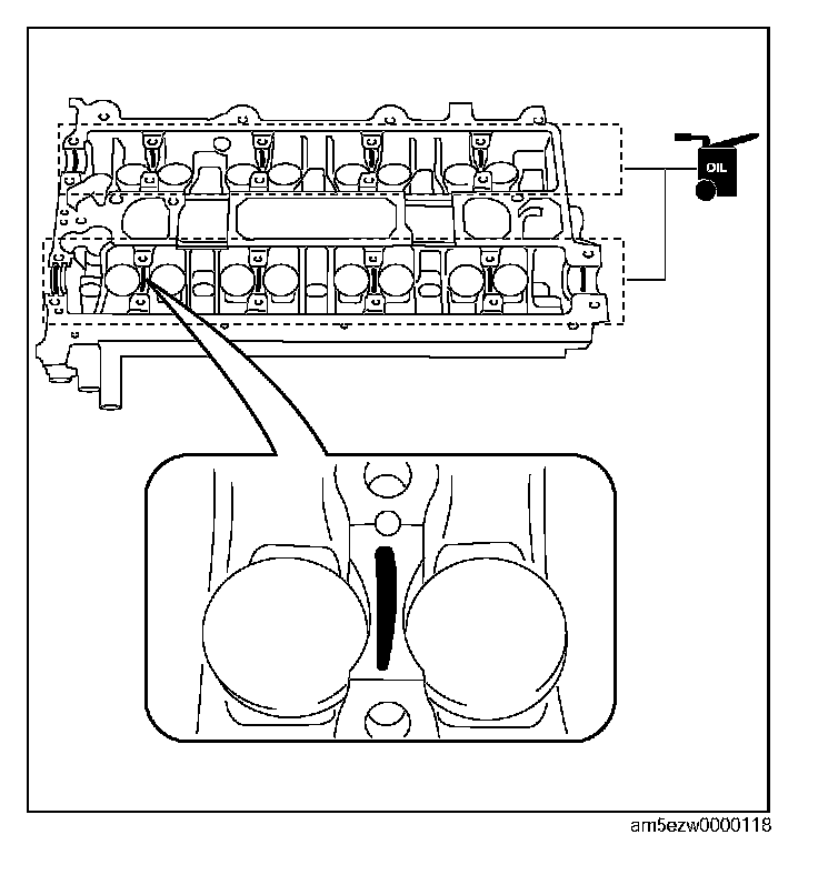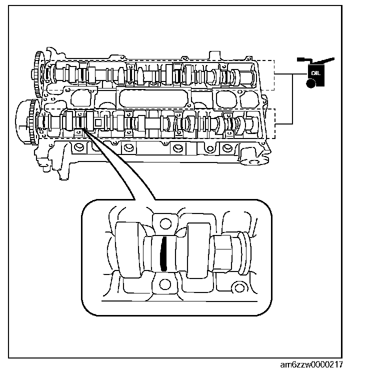 Camshaft Assembly Note1. Apply the gear oil (SAE No.90 or equivalent) to each journal of the cylinder head as shown in the figure.