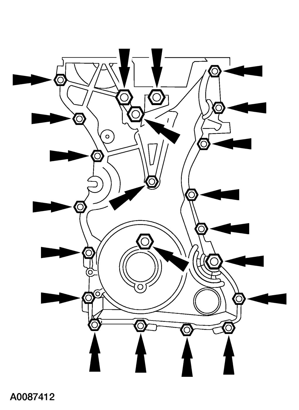 3. Install the engine front cover. Tighten the bolts in the sequence shown, to the following specifications: