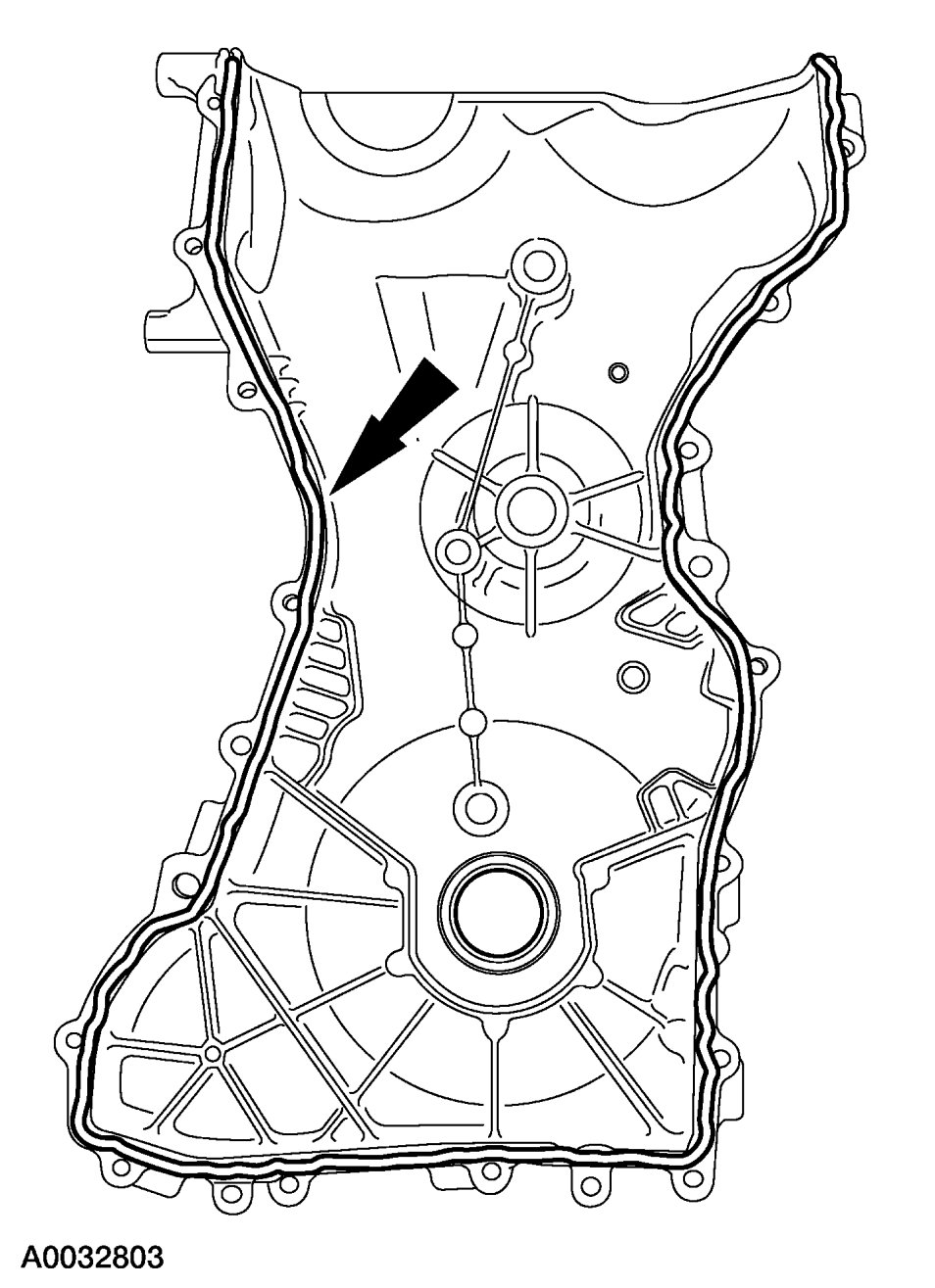 NOTE:The engine front cover must be installed and the bolts tightened within 4 minutes of applying the silicone gasket and sealant.