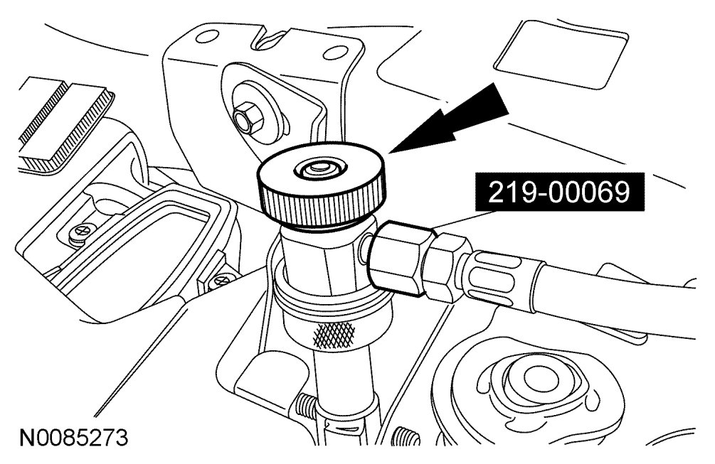 NOTE:If no R-134a pressure is present in the refrigerant system, the system should be evacuated before carrying out the injection procedure. See Air Conditioning (A/C) System Evacuation And Charging.
