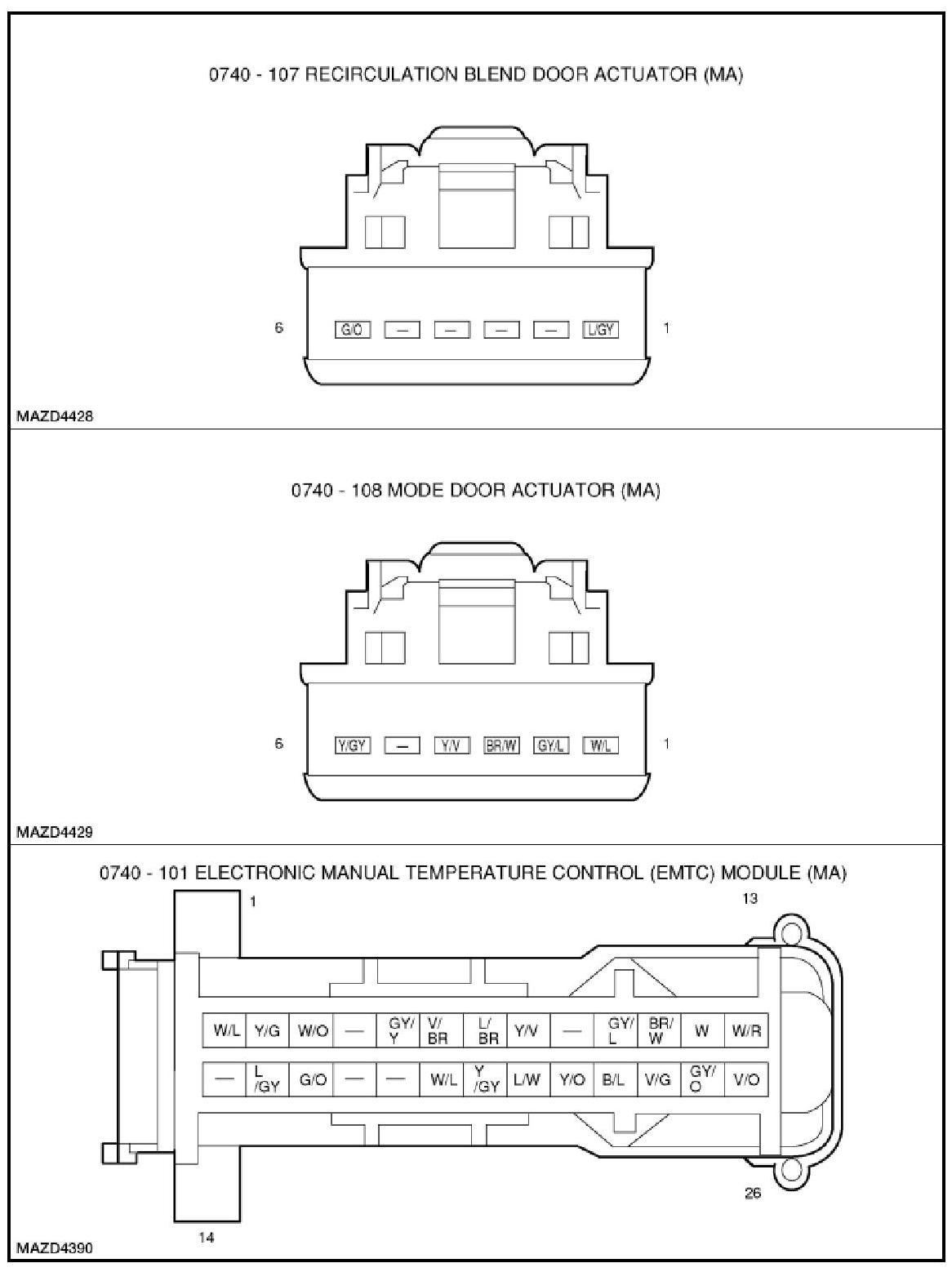 CONNECTOR END VIEWS - MANUAL CLIMATE CONTROL