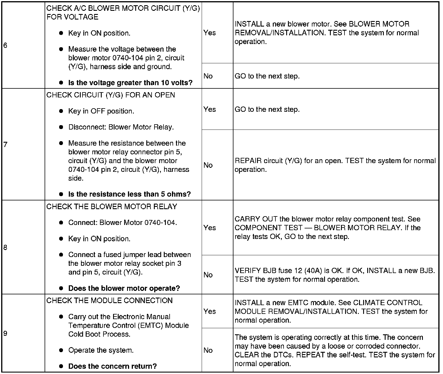 Pinpoint Test 7: The Blower Motor Is Inoperative - Manual Climate Control Module