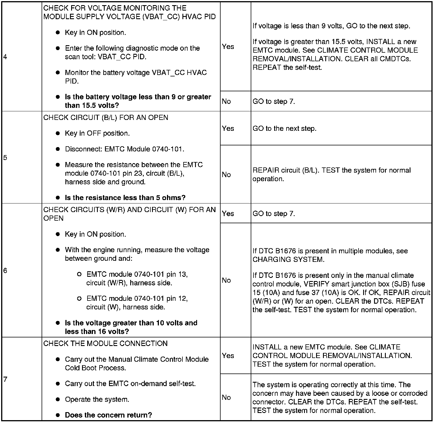 Pinpoint Test 9: DTC B1676 - Battery Voltage Out Of Range