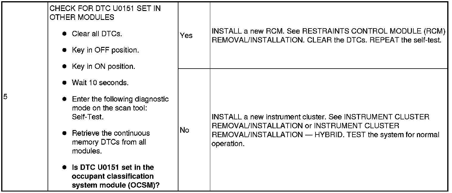 The instrument cluster sets DTC U0151 in continuous memory if data messages received from the restraints control module (RCM) over the high speed controller area network (HS-CAN) are missing. For a complete list of all network messages, see Communications Network - Control System.