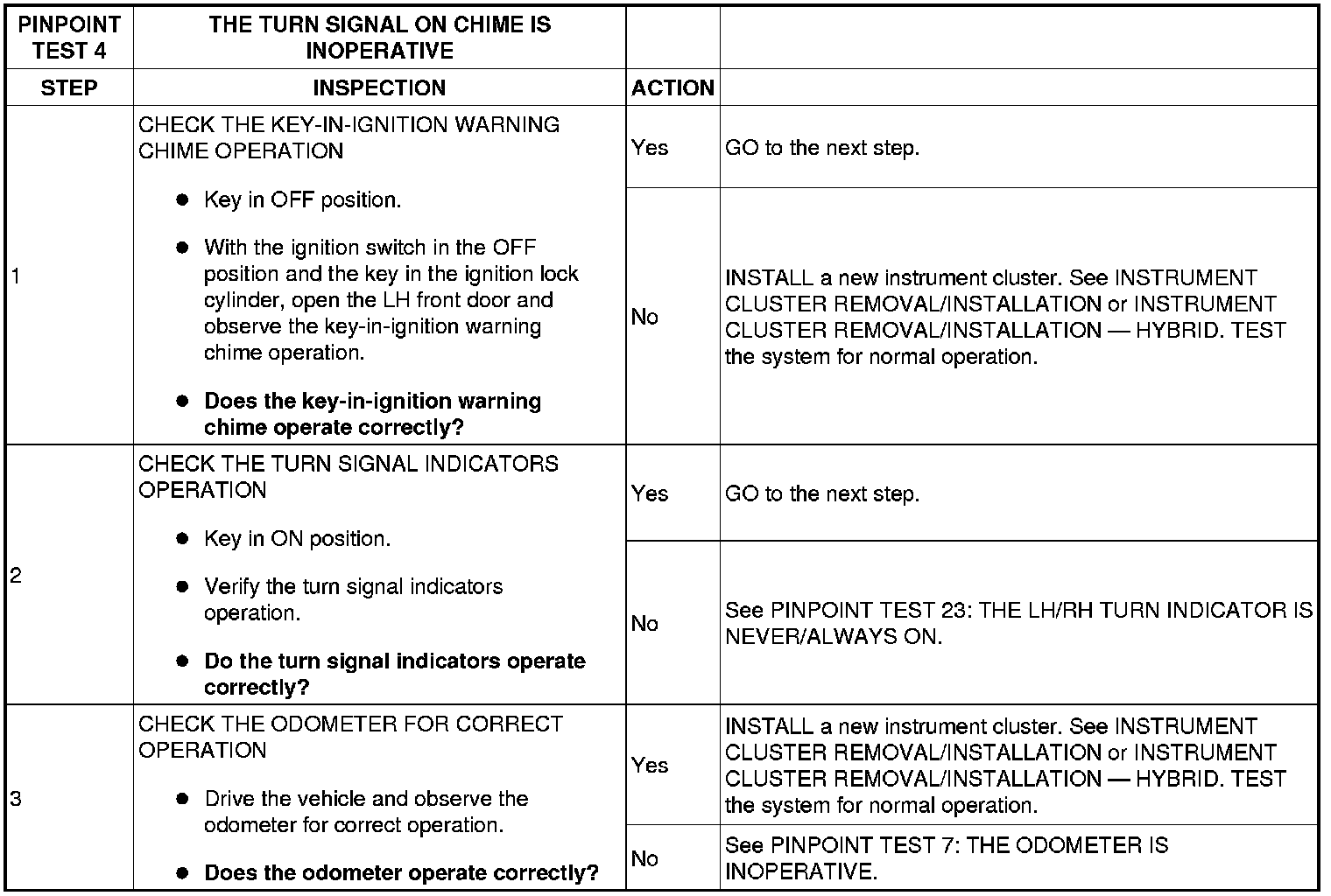 PINPOINT TEST 4: THE TURN SIGNAL ON CHIME IS INOPERATIVE