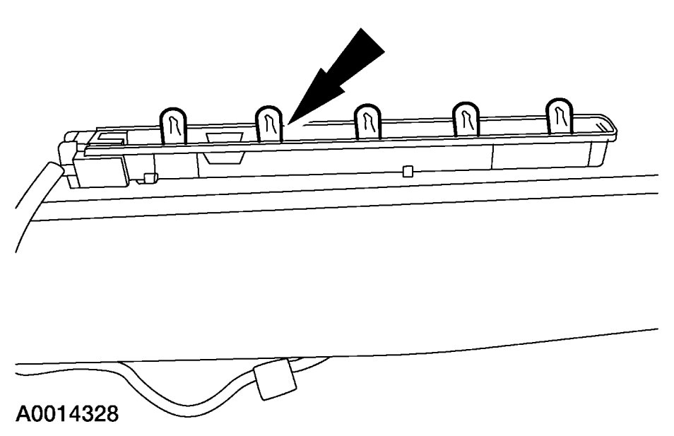 2. Remove the high-mounted stoplamp bulb holder from the lamp assembly by disengaging the snaps.