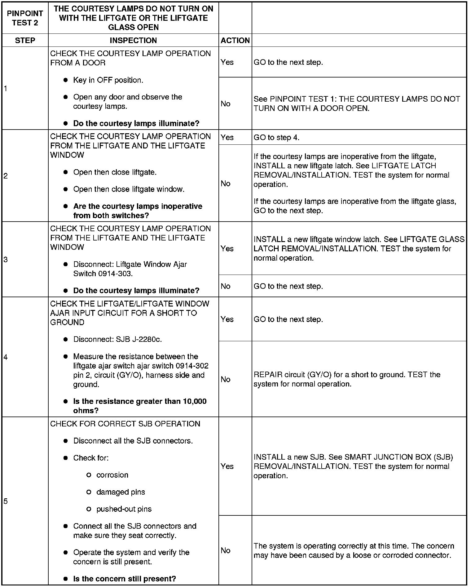 PINPOINT TEST 2: THE COURTESY LAMPS DO NOT TURN ON WITH THE LIFTGATE OR THE LIFTGATE GLASS OPEN