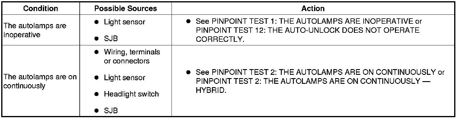 Symptom Troubleshooting Chart - Autolamps
