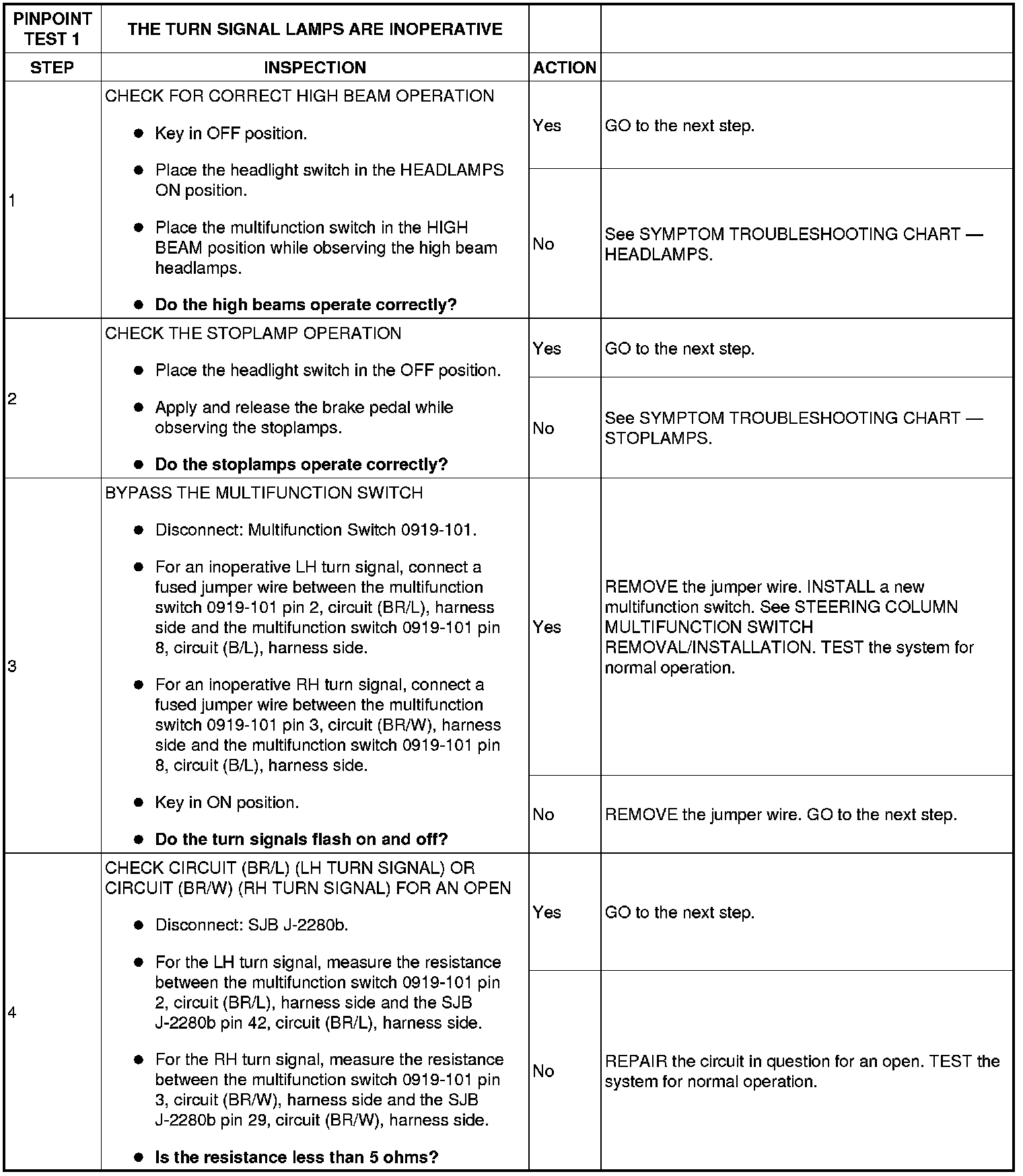 Pinpoint Test 1: The Turn Signal Lamps Are Inoperative