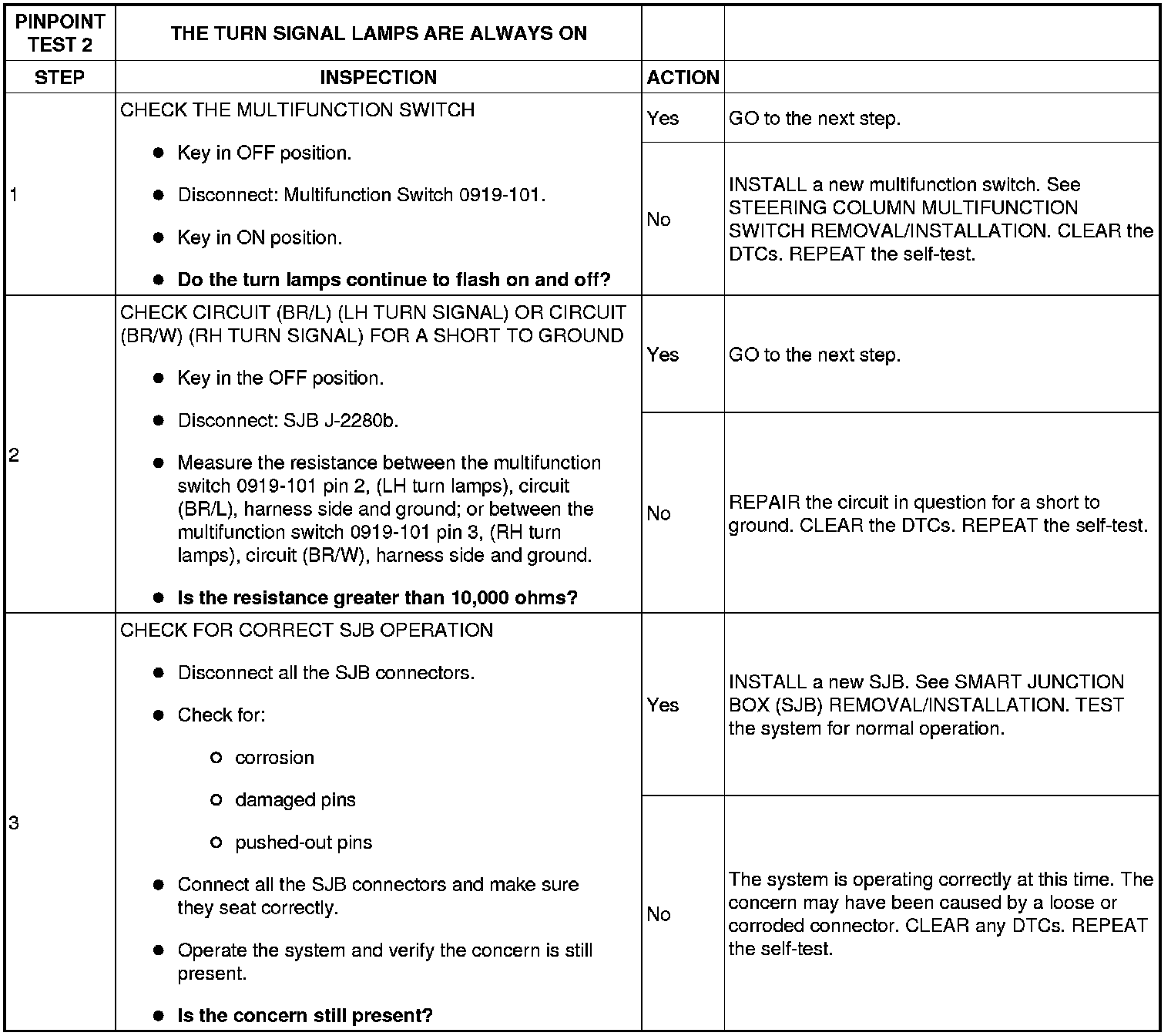 - DTC B2282 (Left Turn Switch Short to Ground) - an on-demand DTC that sets when the SJB detects a short to ground from the LH turn signal switch input circuit.