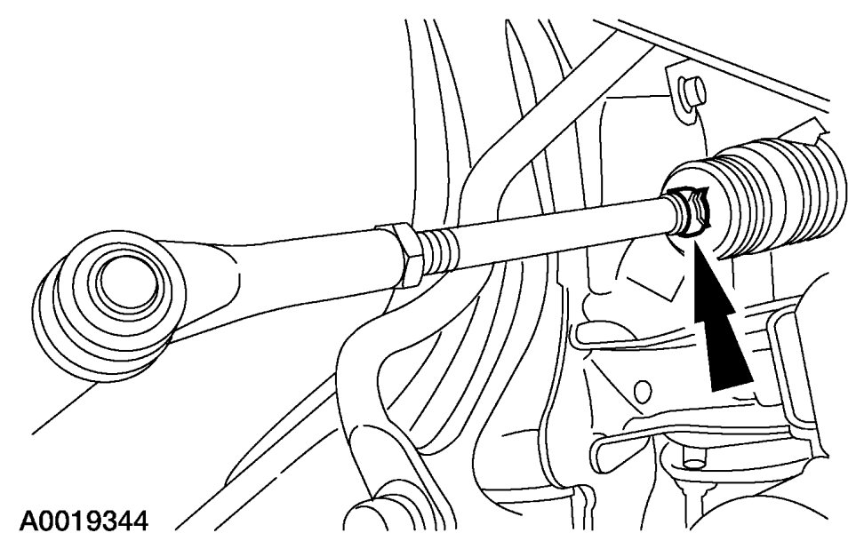 CAUTION:Hold the tie-rod end stationary with a wrench while tightening the nut, or damage to the boot can occur.