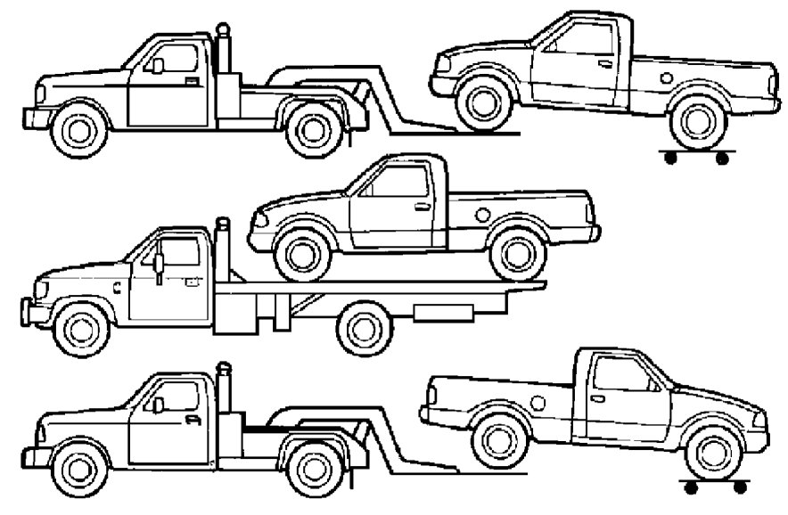 On 4WD vehicles, it is recommended that the vehicle be towed with a wheel lift and dolly or flatbed equipment.Do not tow with sling belt equipment.
