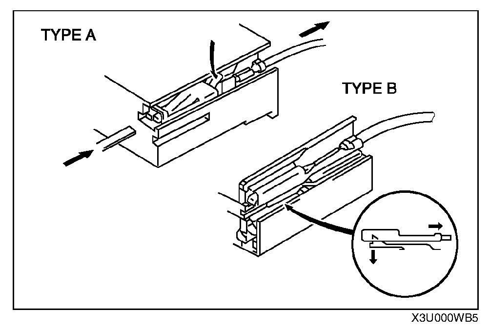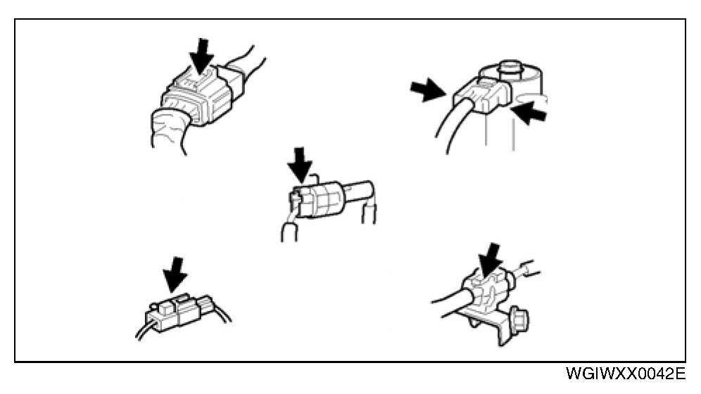 - Inspect the terminals of waterproof connectors from the connector side since they cannot be accessed from the wiring harness side.