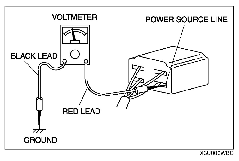 CAUTION: Do not connect a jumper wire from the power source line to a body ground. This may cause burning or other damage to wiring harnesses or electronic components.