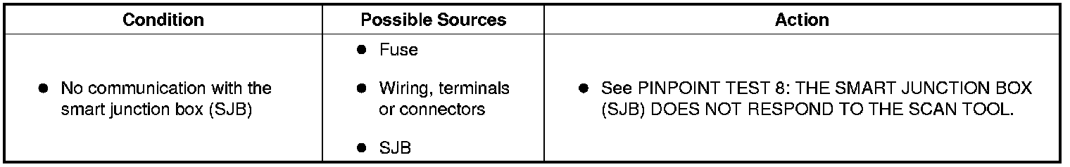 SYMPTOM TROUBLESHOOTING CHART - SMART JUNCTION BOX (SJB)