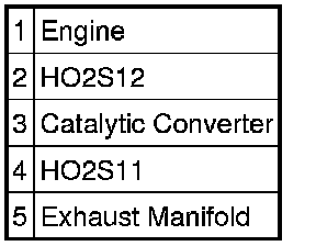 The exhaust system consists of an exhaust manifold, front exhaust pipe, upstream heated oxygen sensor (HO2S), rear exhaust pipe, downstream HO2S, a muffler and an exhaust tailpipe. The catalytic converter is installed between the front and rear exhaust pipes. Catalytic converter efficiency is monitored by the OBD II system.