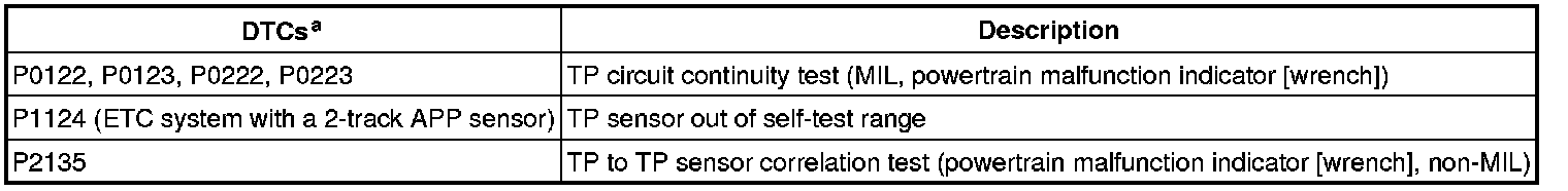 a Correlation and range/performance - sensor disagreement between processors internal to the PCM, TP inconsistent with requested throttle plate position. Monitor execution is continuous. Monitor false detection duration is less than 1 second to register a concern. See - PCM - DTC Index.