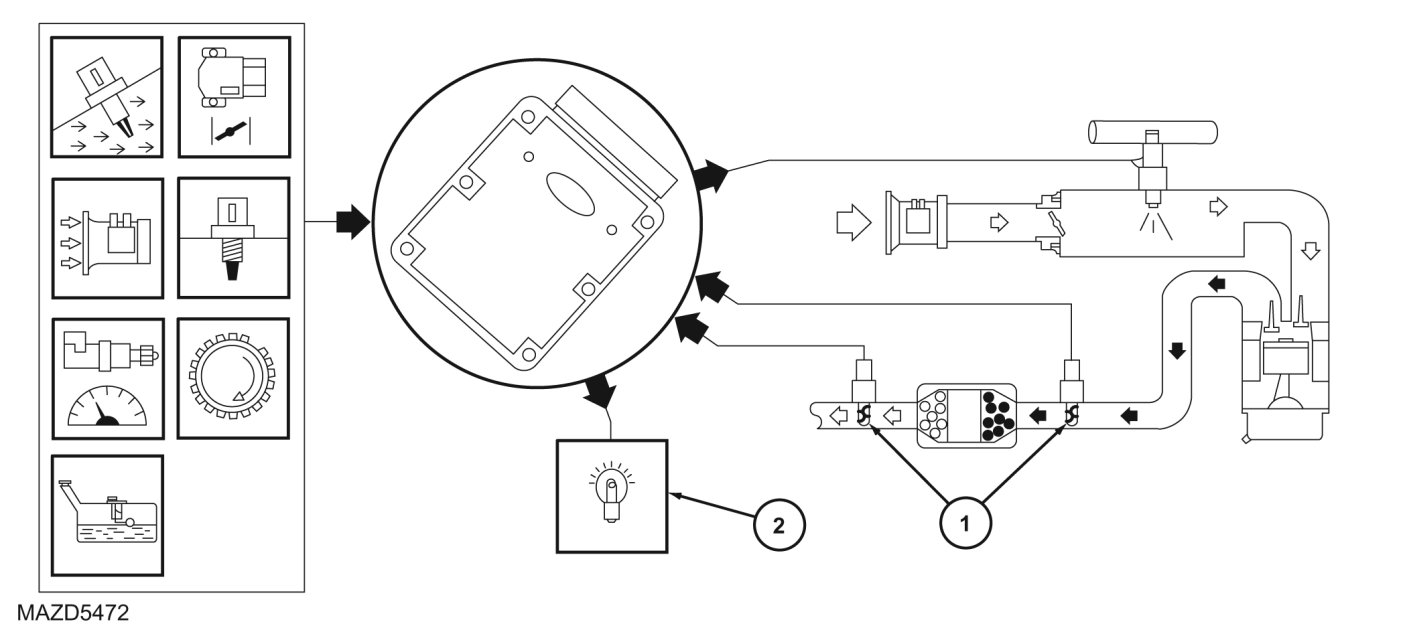 1. The PCM receives input signals from the intake air temperature (IAT), engine coolant temperature (ECT), engine oil temperature (EOT), CMP, throttle position (TP), mass air flow (MAF), and CKP sensors to determine the operating conditions of the engine. At idle and low engine speeds with closed throttle, the PCM controls the camshaft position based on ECT, EOT, IAT, and MAF. During part and wide open throttle, the camshaft position is determined by engine RPM, load and throttle position. The VCT system does not operate until the engine is at normal operating temperature.