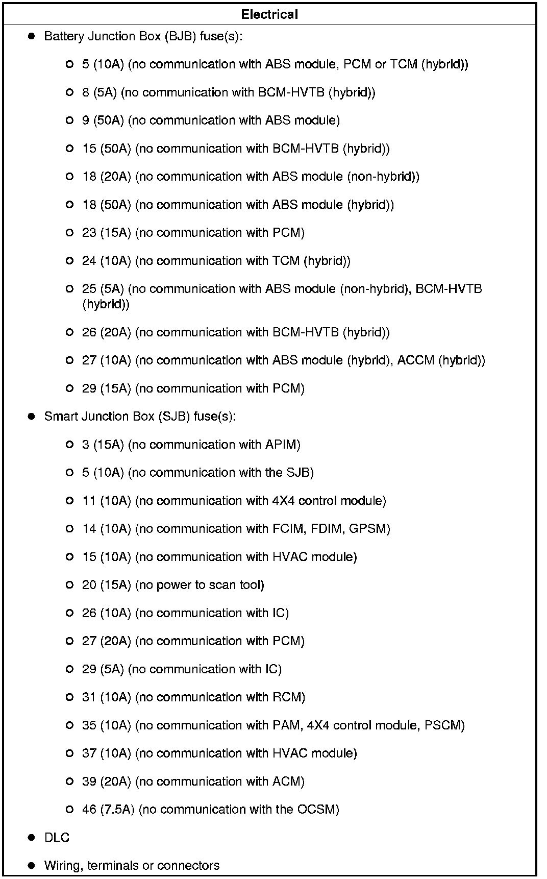 - If the network test fails, see CAN Communication Network to diagnose the failed communication network.