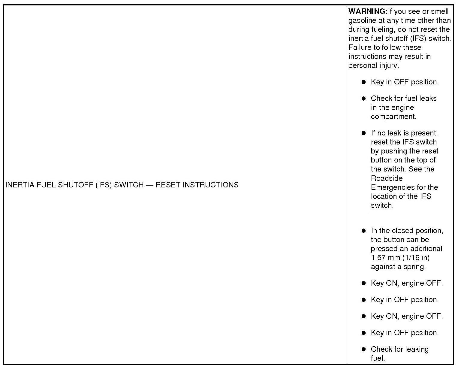WARNING:When handling fuel, always observe fuel handling precautions and be prepared in the event of fuel spillage. Spilled fuel may be ignited by hot vehicle components or other ignition sources. Failure to follow these instructions may result in serious personal injury.