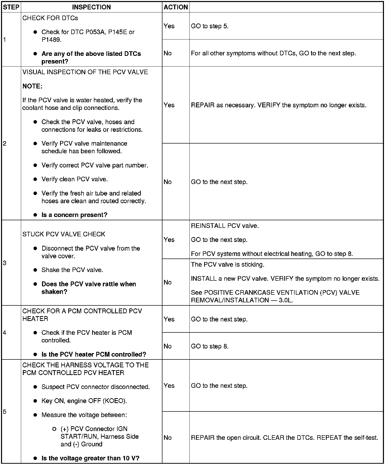 TEST 5: POSITIVE CRANKCASE VENTILATION (PCV) SYSTEM