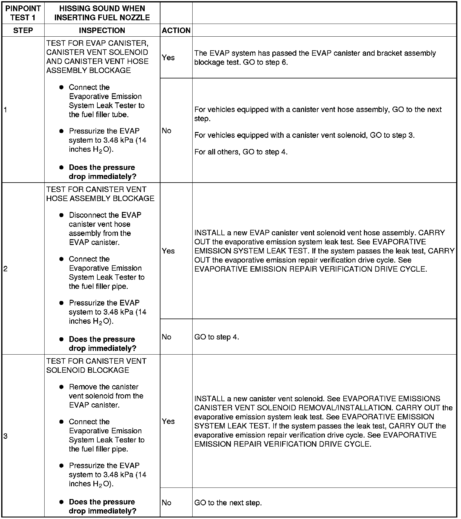 PINPOINT TEST 1: HISSING SOUND WHEN INSERTING FUEL NOZZLE