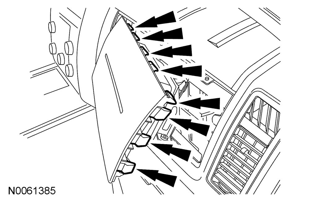 NOTE:During passenger air bag module installation, make sure all the passenger air bag cover clips are fully seated into the instrument panel.