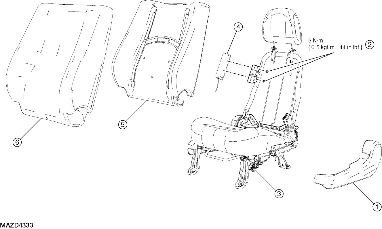 - To install, tighten to 5 Nm {0.5 kgf-m, 44 in-lbf}.