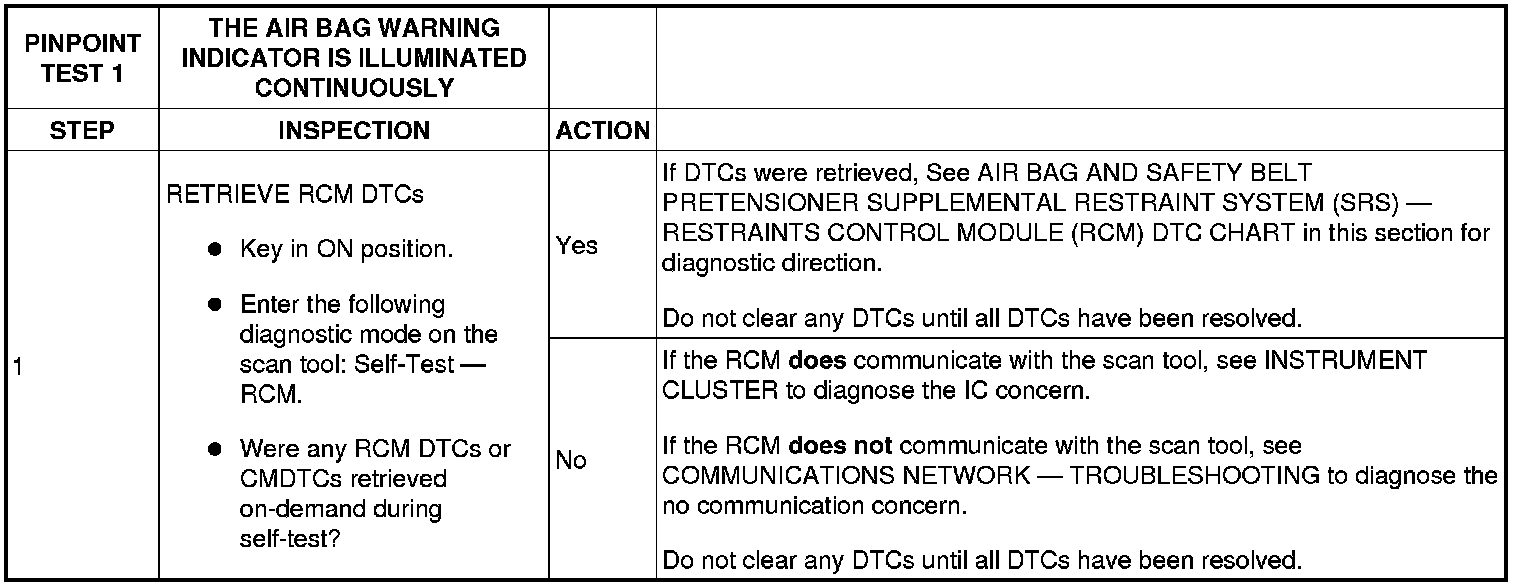 Pinpoint Test 1: The Air Bag Warning Indicator Is Illuminated Continuously