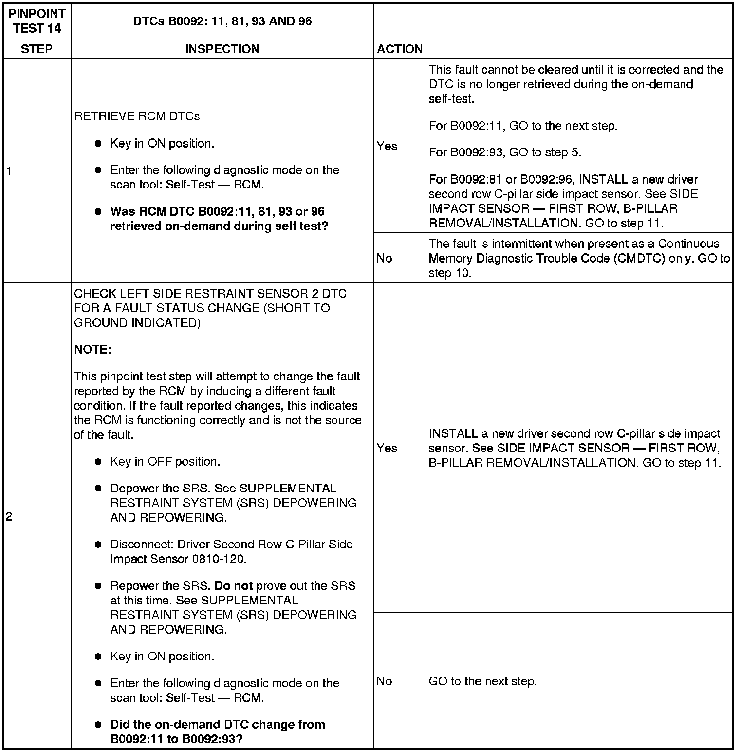 Pinpoint Test 14: DTCs B0092:11, 81, 93 And 96