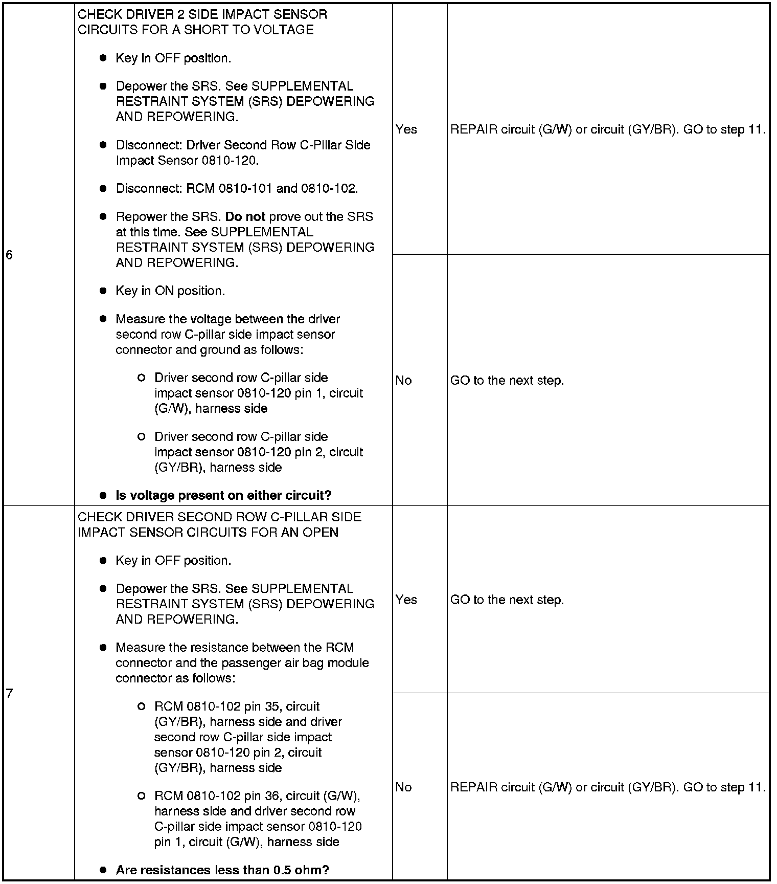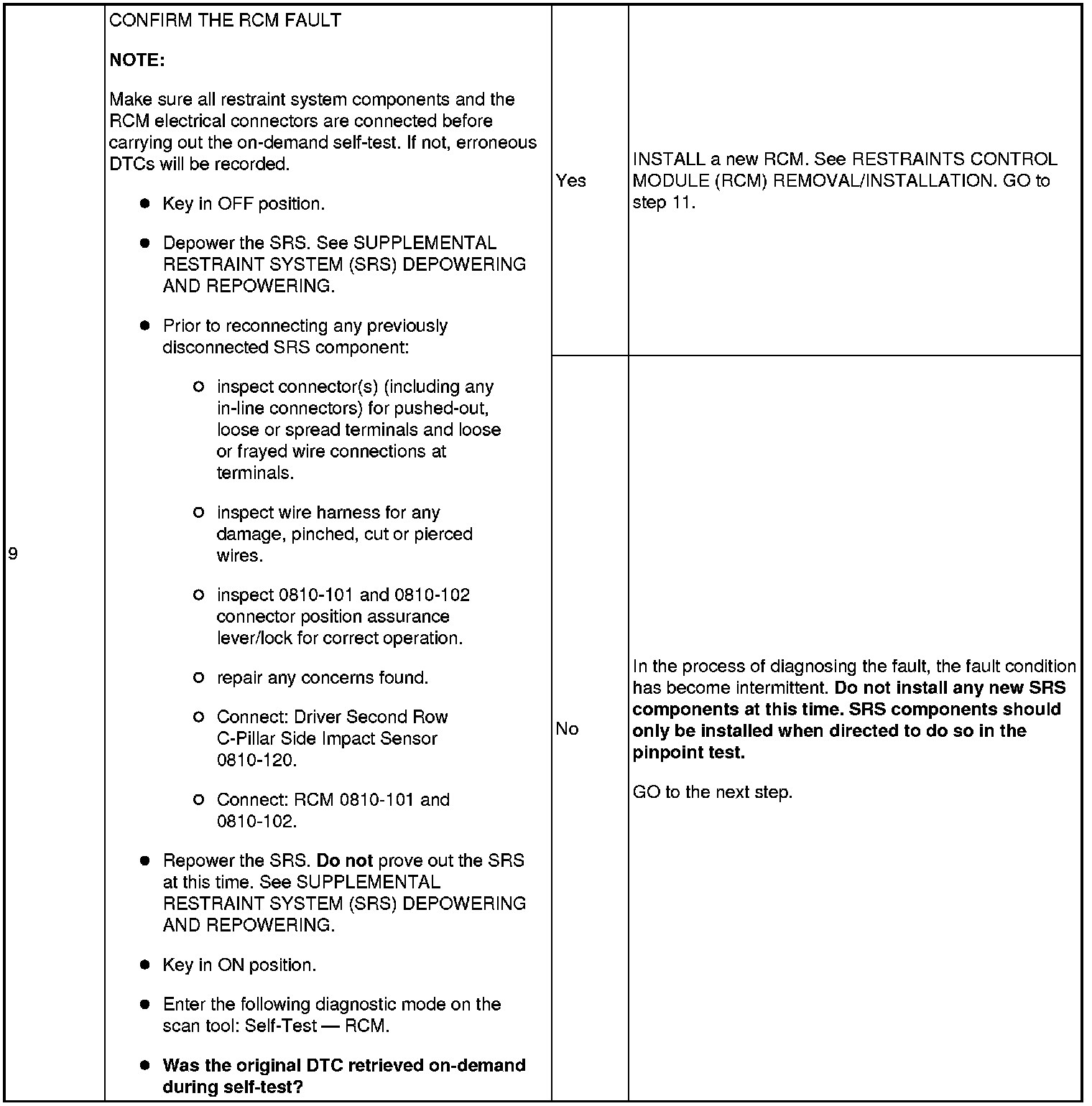 NOTE:Supplemental Restraint System (SRS) components should only be disconnected or reconnected when instructed to do so within a pinpoint test step. Failure to follow this instruction may result in incorrect diagnosis of the SRS.