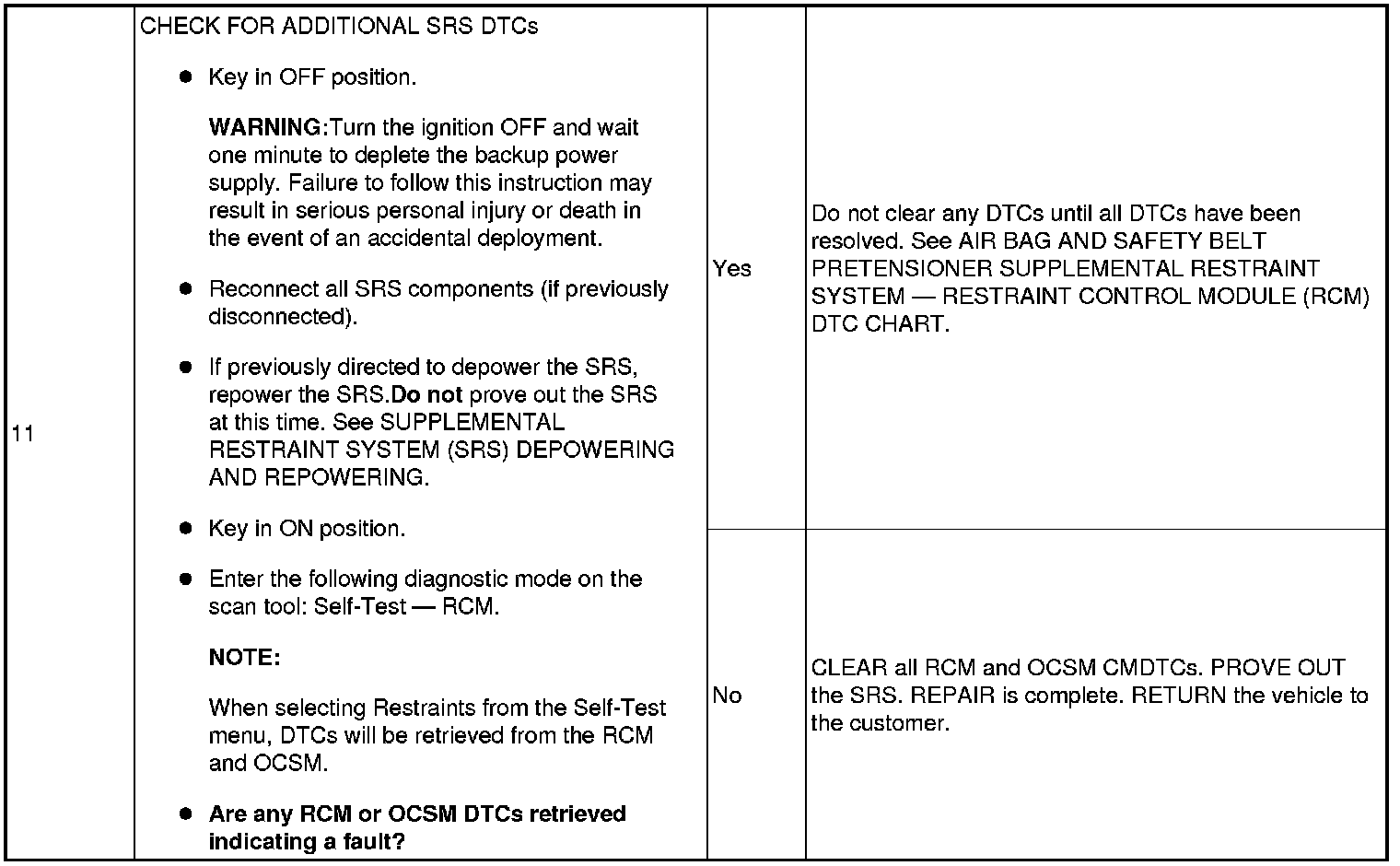 NOTE:The SRS must be fully operational and free of faults before releasing the vehicle to the customer.