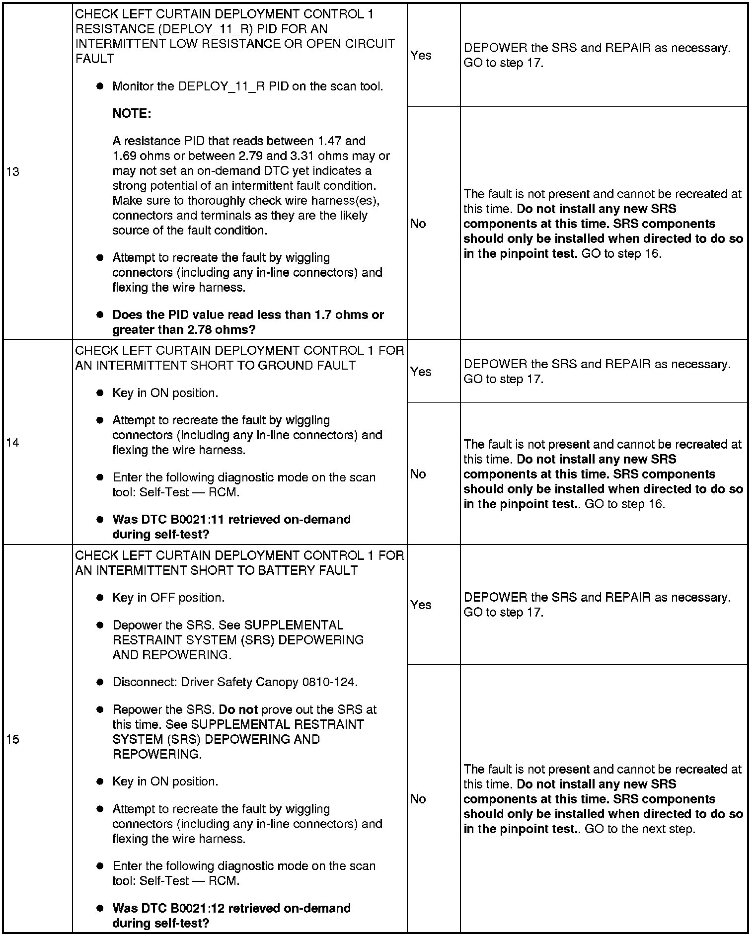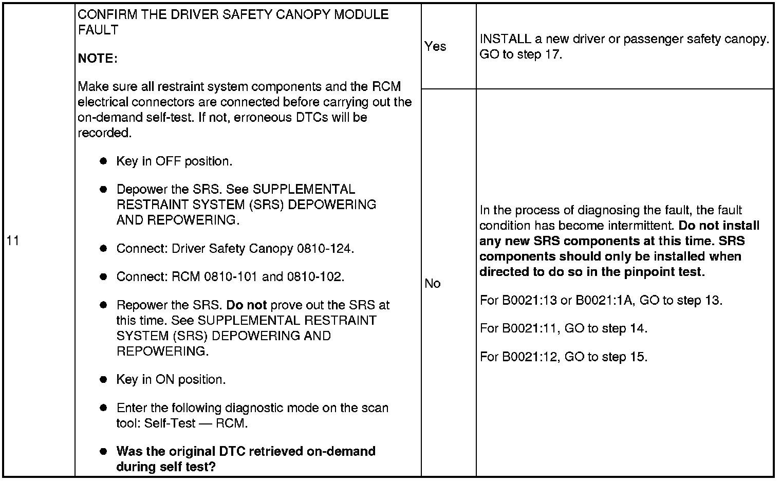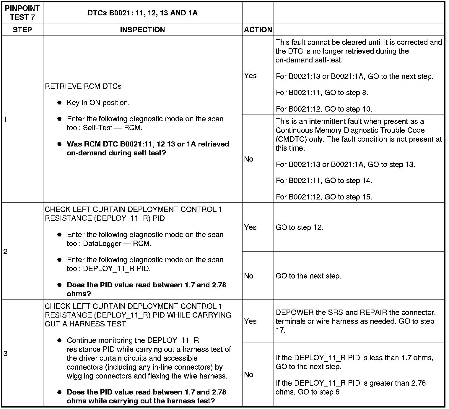 Pinpoint Test 7: DTCs B0021: 11, 12, 13 And 1A