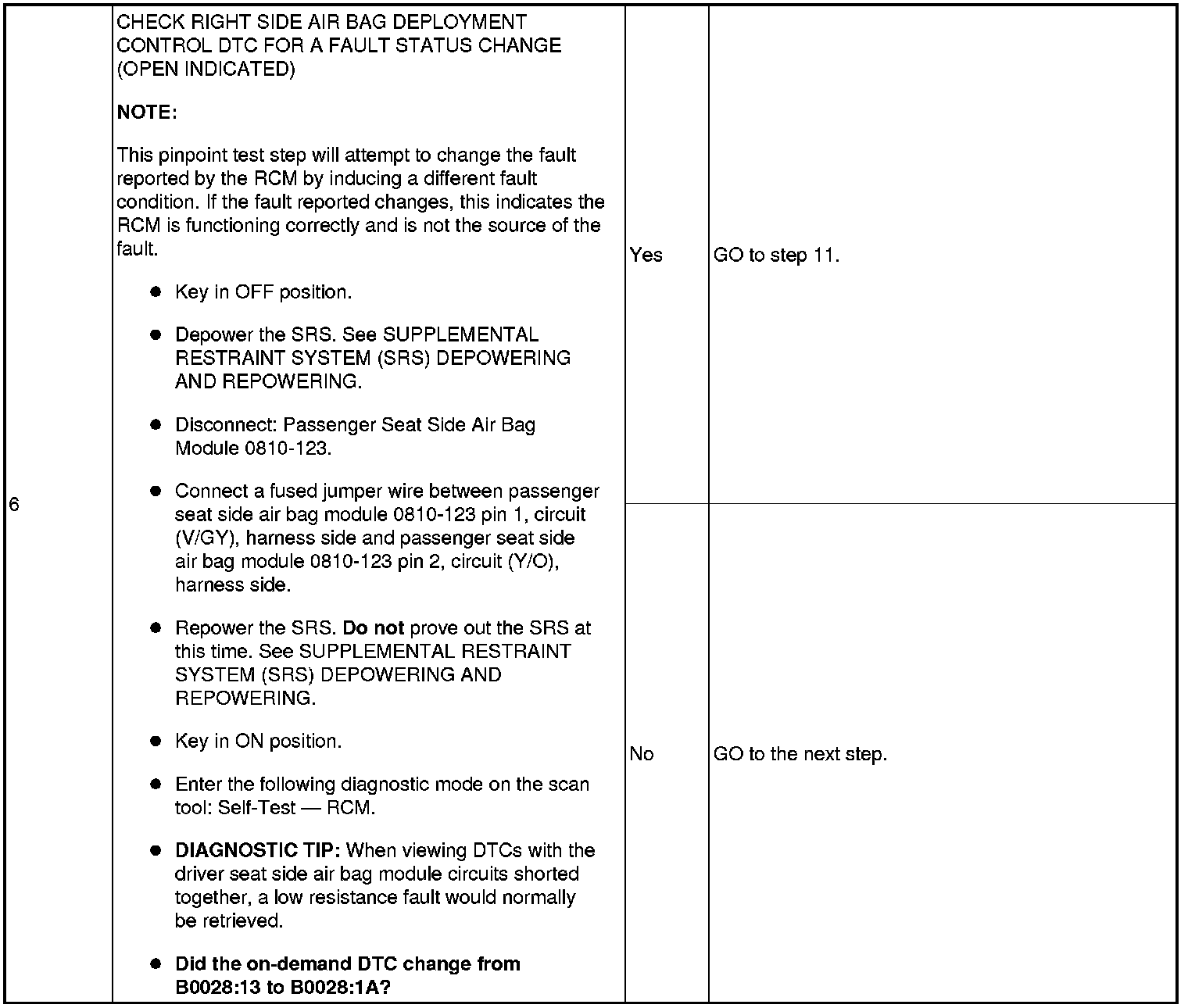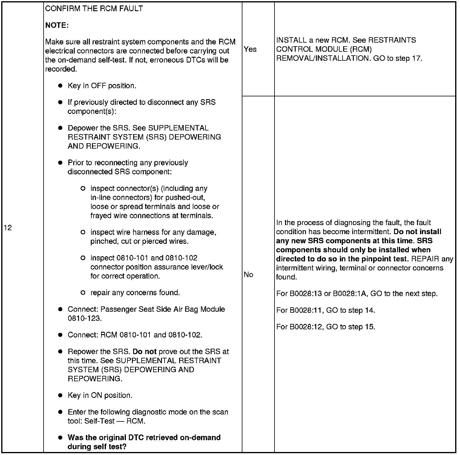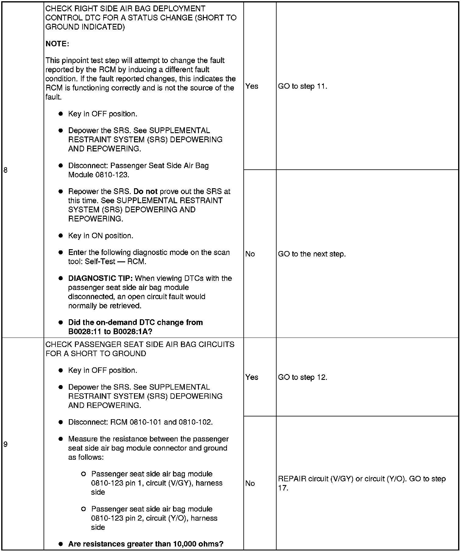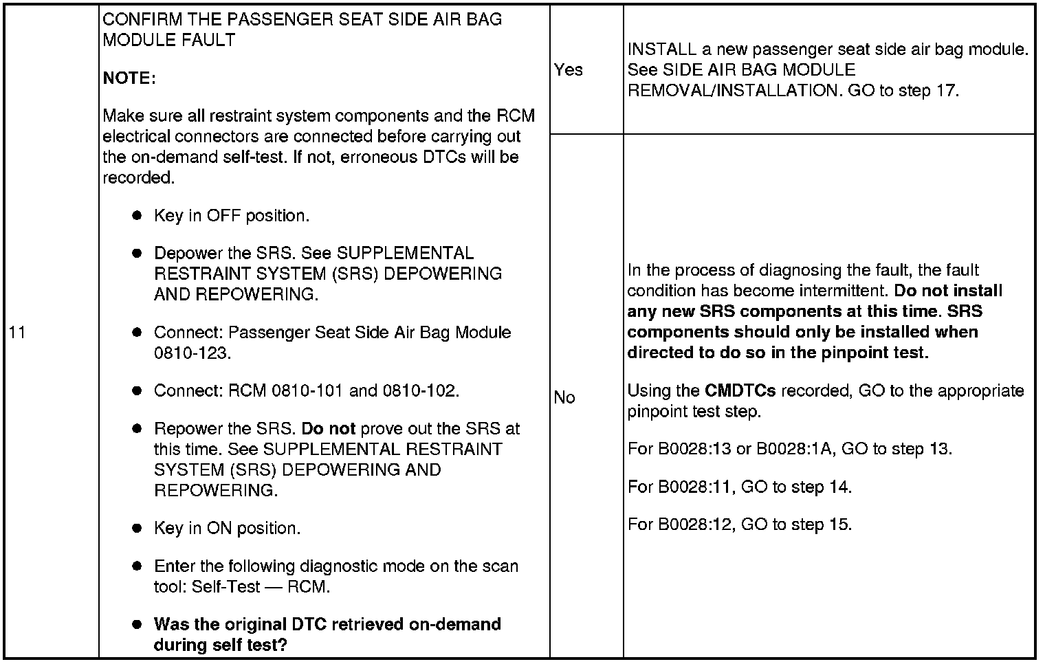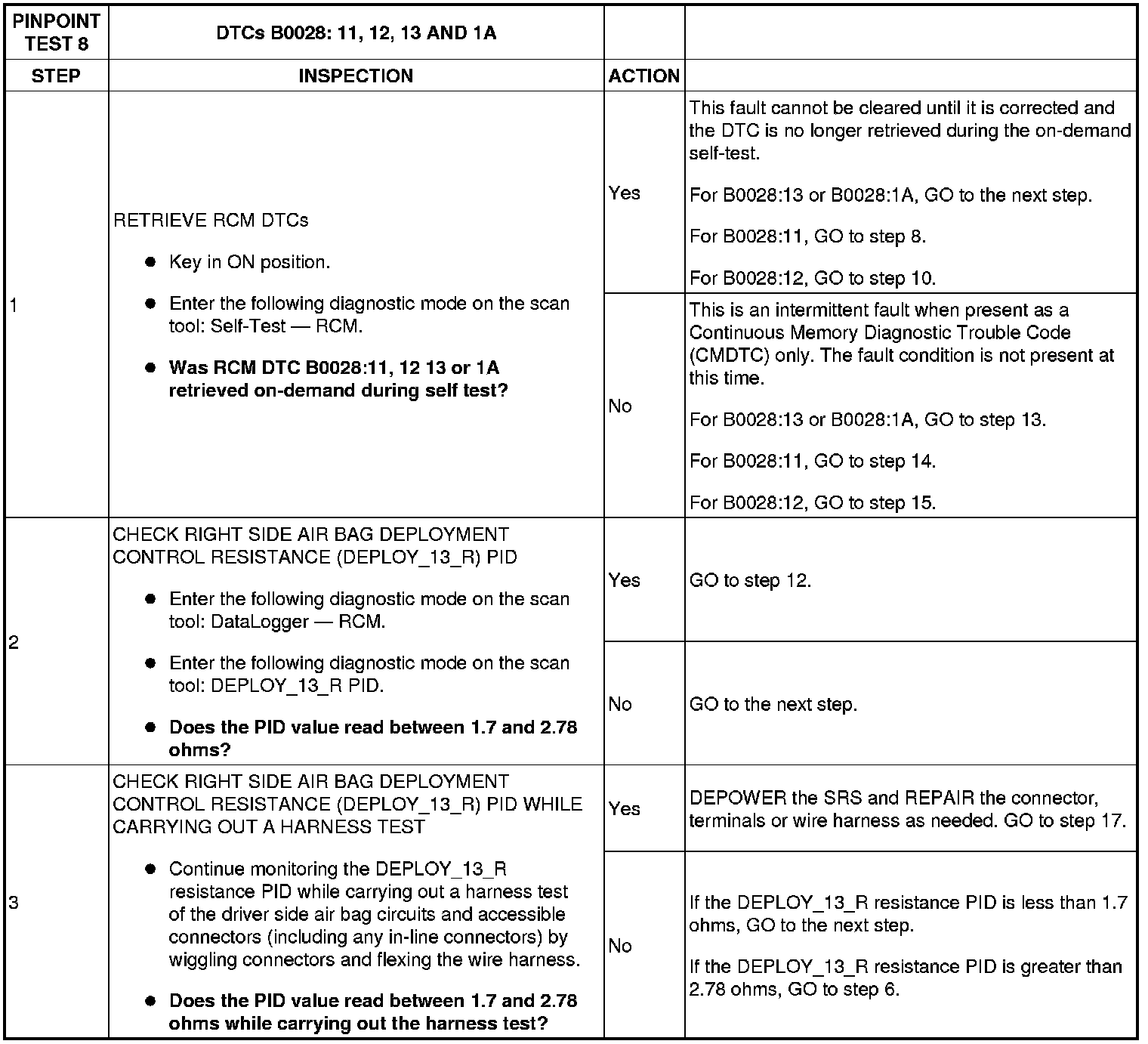Pinpoint Test 8: DTCs B0028: 11, 12, 13 And 1A