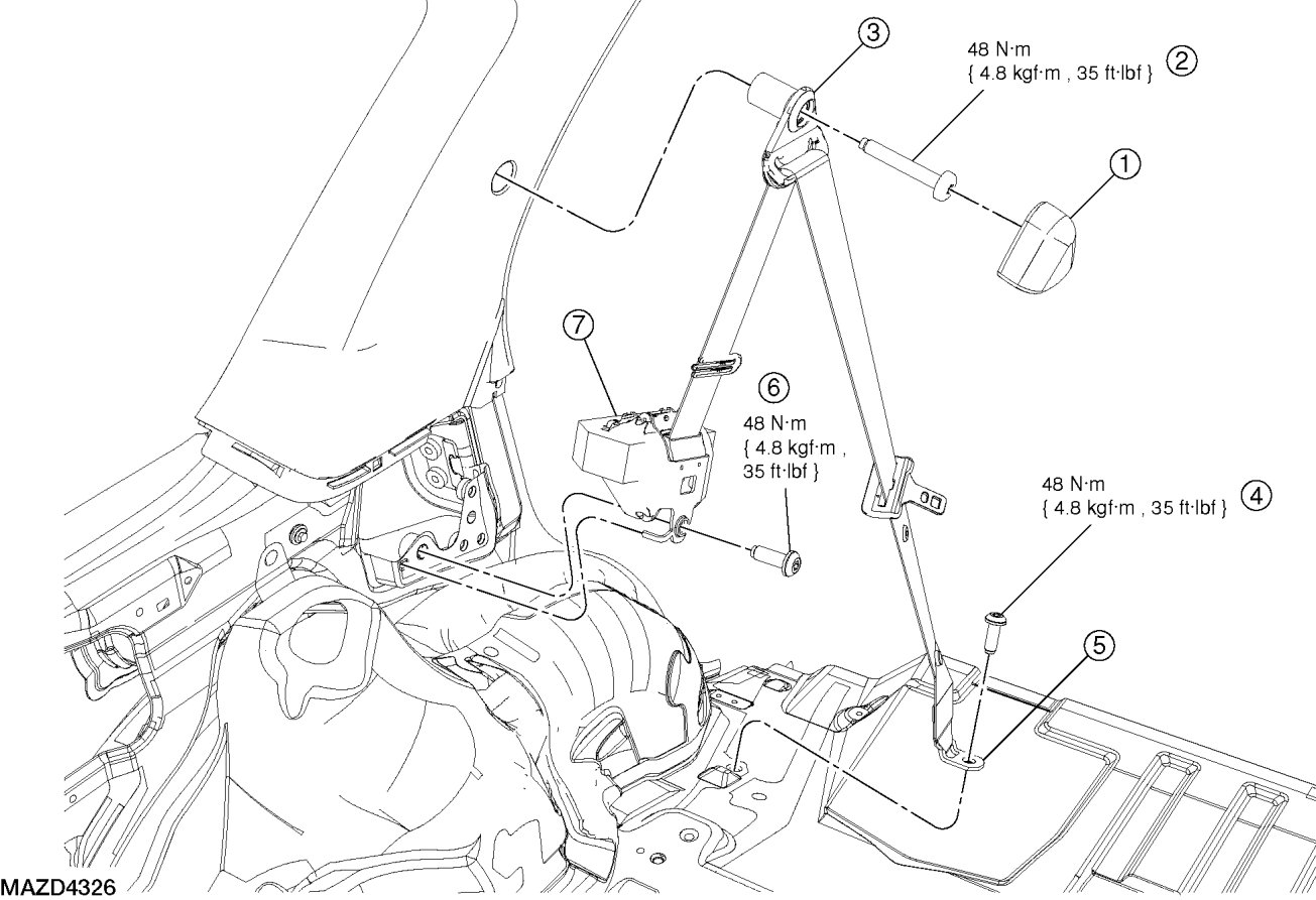 - To install, tighten to 48 Nm {4.8 kgf-m, 35 ft-lbf}.