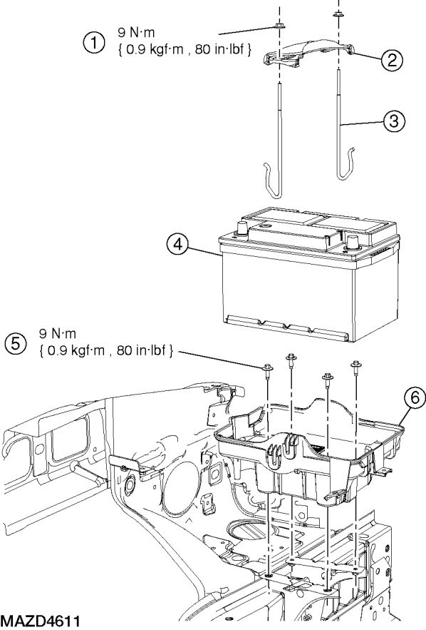 BATTERY AND BATTERY TRAY - EXPLODED VIEW