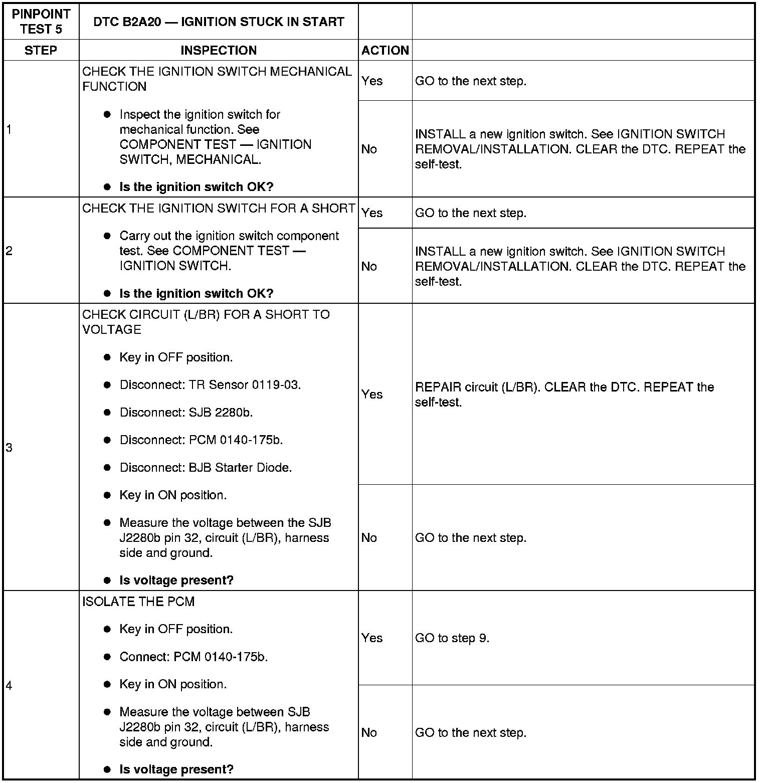 PINPOINT TEST 5: DTC B2A20 - IGNITION STUCK IN START
