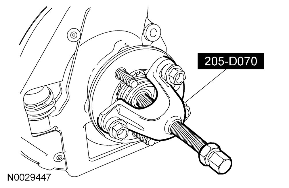 3. Using the Front Hub Remover, separate the outer constant velocity (CV) joint spindle from the wheel hub.