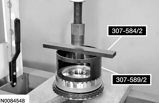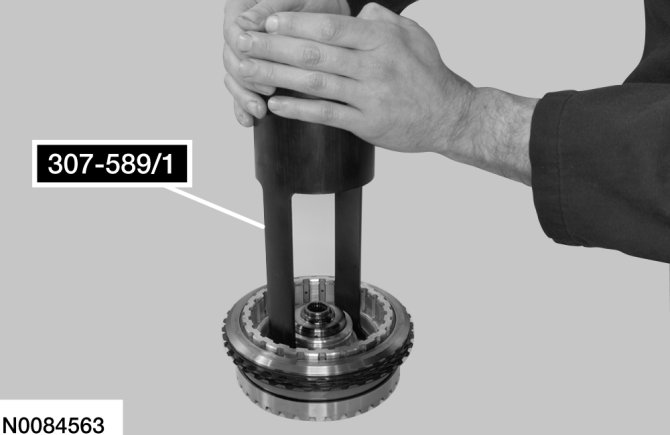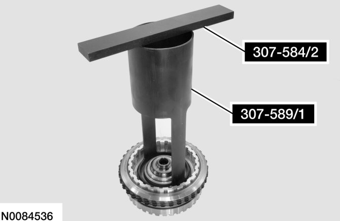 7. Install Overdrive Clutch and Balance Piston Service Set and 2-6 Spring Compressor on the balance piston.