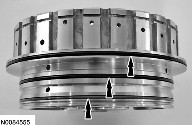 12. Install 2 new seals on the O/D (4, 5, 6) clutch piston and lubricate the seals with petroleum jelly.