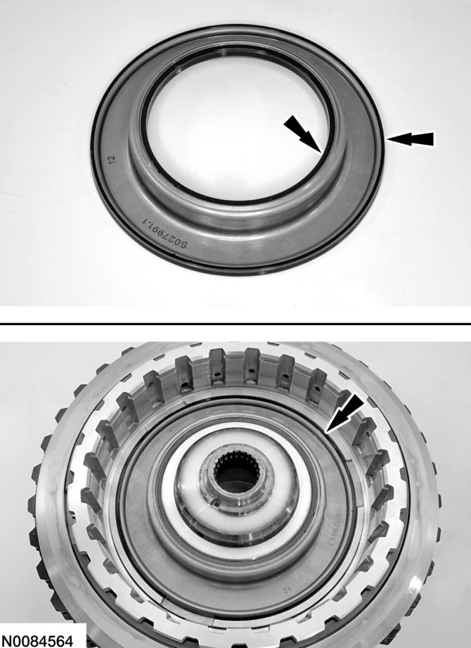 13. Install a new O/D (4, 5, 6) clutch piston clutch piston inner seal and lubricate the seal with petroleum jelly.